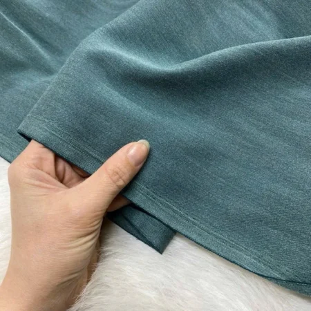 Vải tuysi xanh có cấu trúc dệt chéo nhẹ, giúp bề mặt vải chắc chắn và ít nhăn. Khi may lên quần, form quần đứng dáng, không bị xô lệch trong quá trình sử dụng. Chất vải có độ co giãn vừa phải, tạo sự thoải mái khi vận động, đặc biệt phù hợp với môi trường công sở hoặc phải di chuyển nhiều.