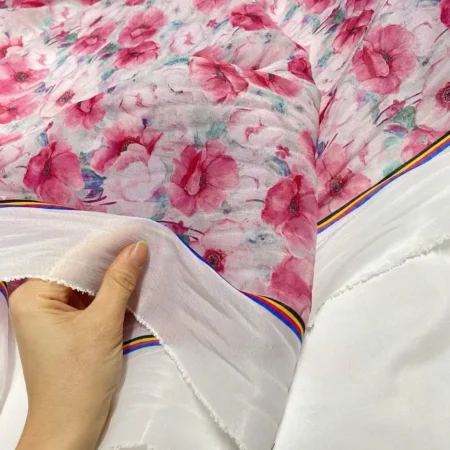 Vải tơ hoa hồng