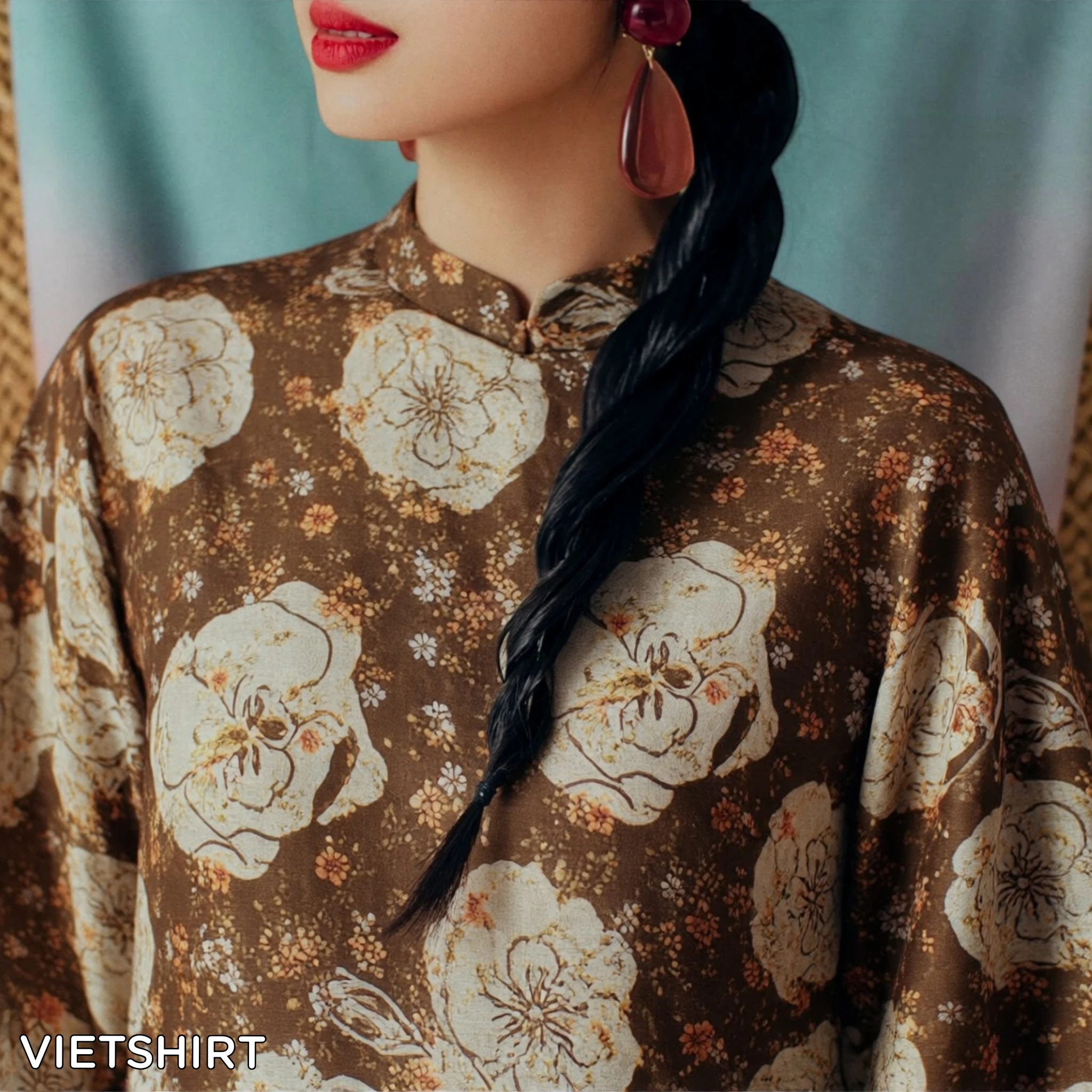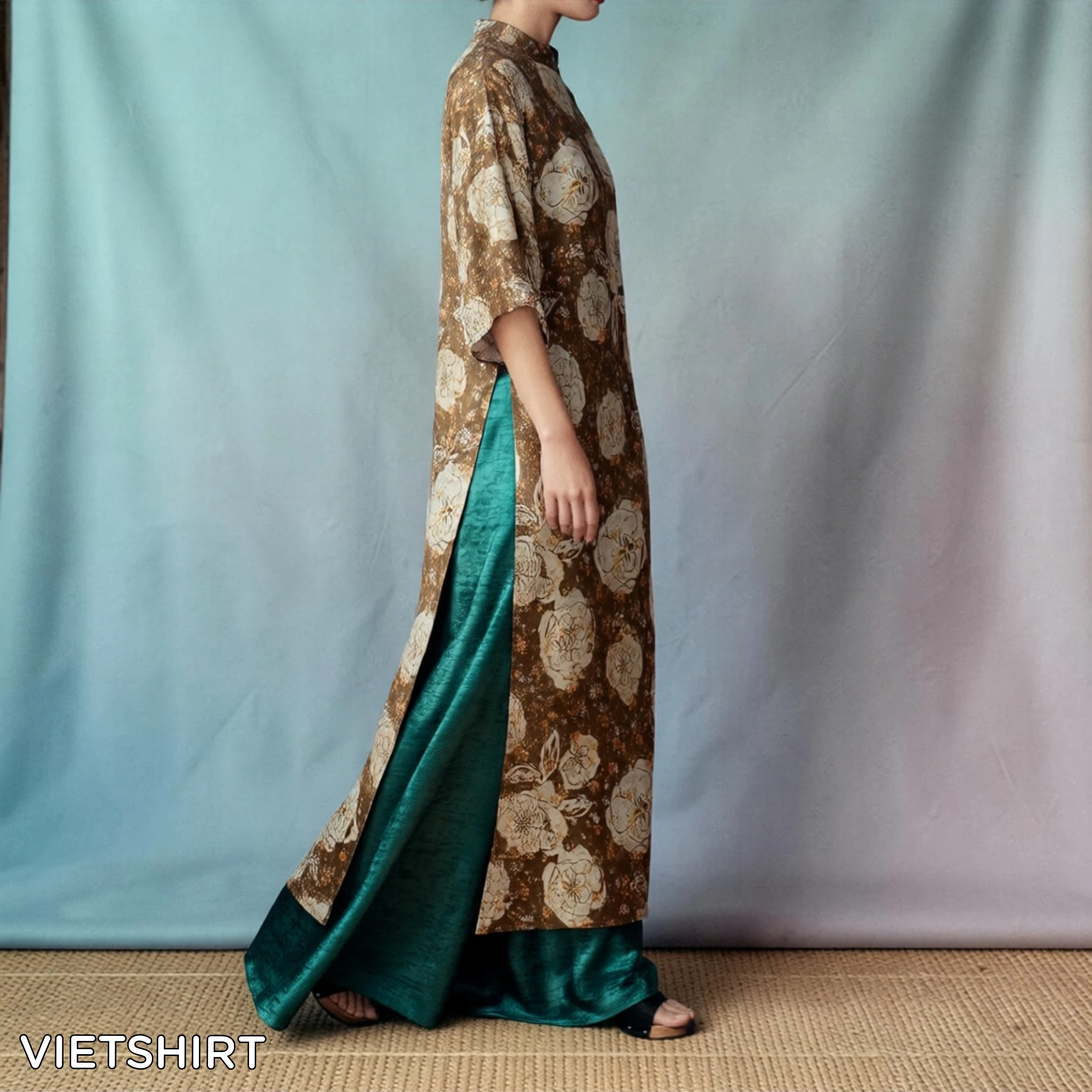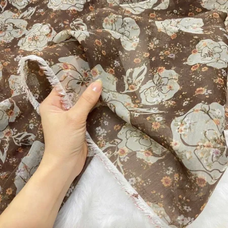 Vải tơ tằm hoa màu nâu